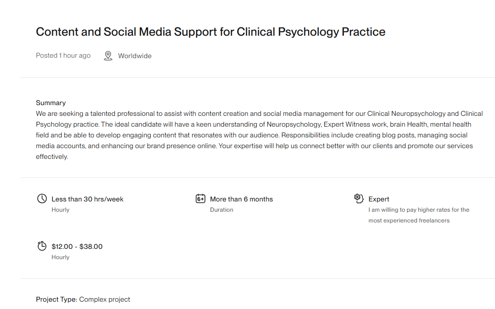 Here are one of the job examples that are posted in Upwork.